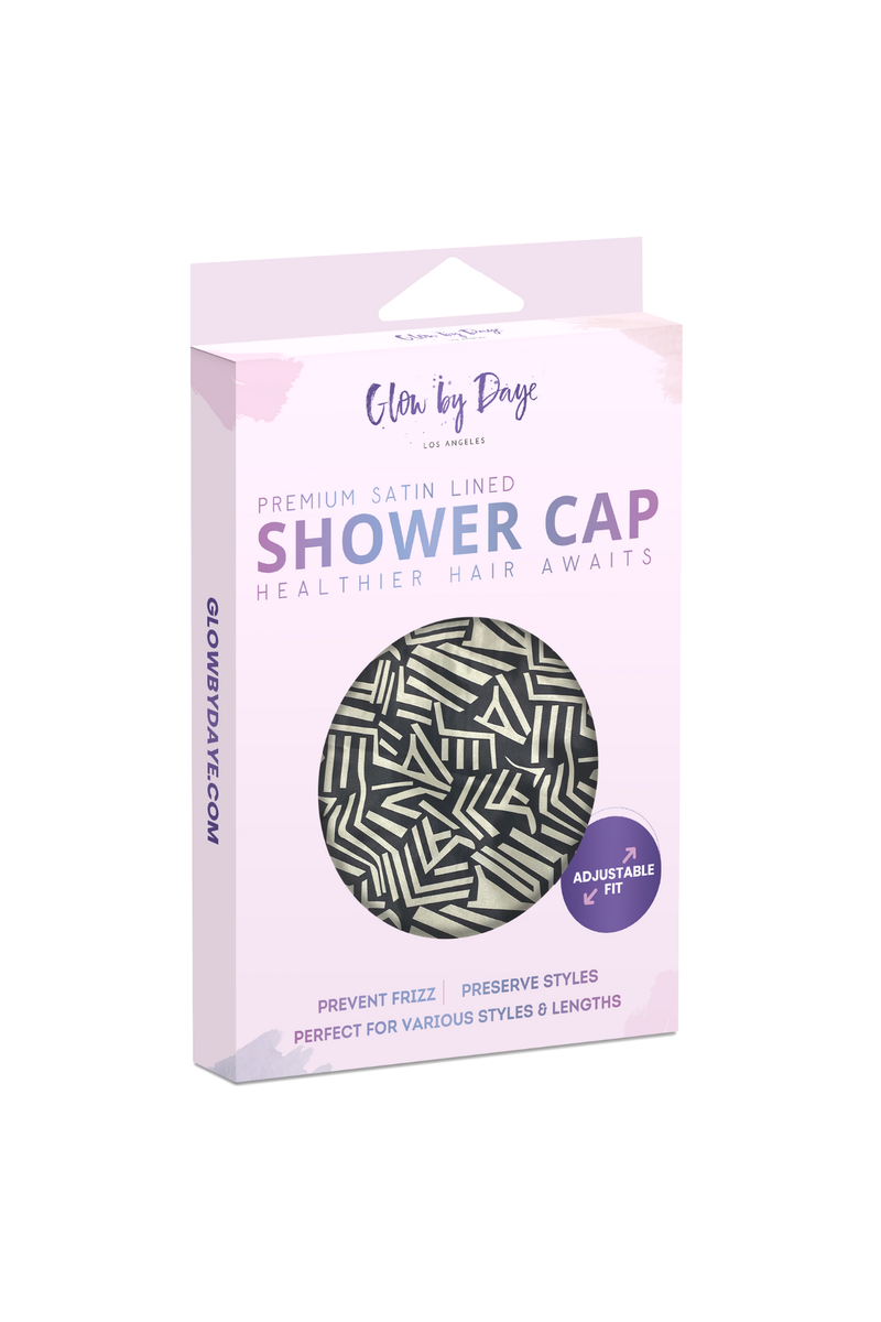 Includes Glow by Daye favorites, Afro Geo Print Satin Lined Shower Cap AND Afro Geo Print Satin Bonnet
